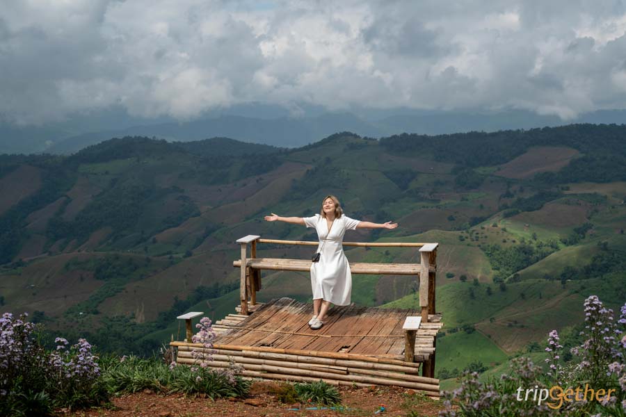 และอีกจุดที่ต้องมาถ่ายรูปคือมุมจุดชมวิวที่มองเห็นภูเขาสวยๆ รอบด้านเลย