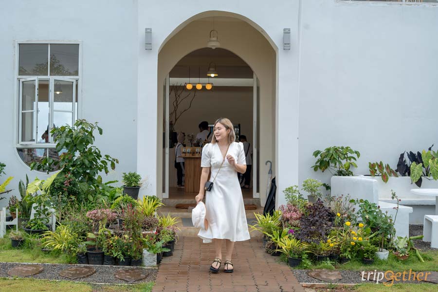 ลึกเข้าไปด้านในจะมีร้านกาแฟเล็กๆ มีมุมโต๊ะไม้ให้นั่งจิบกาแฟเพลินๆ