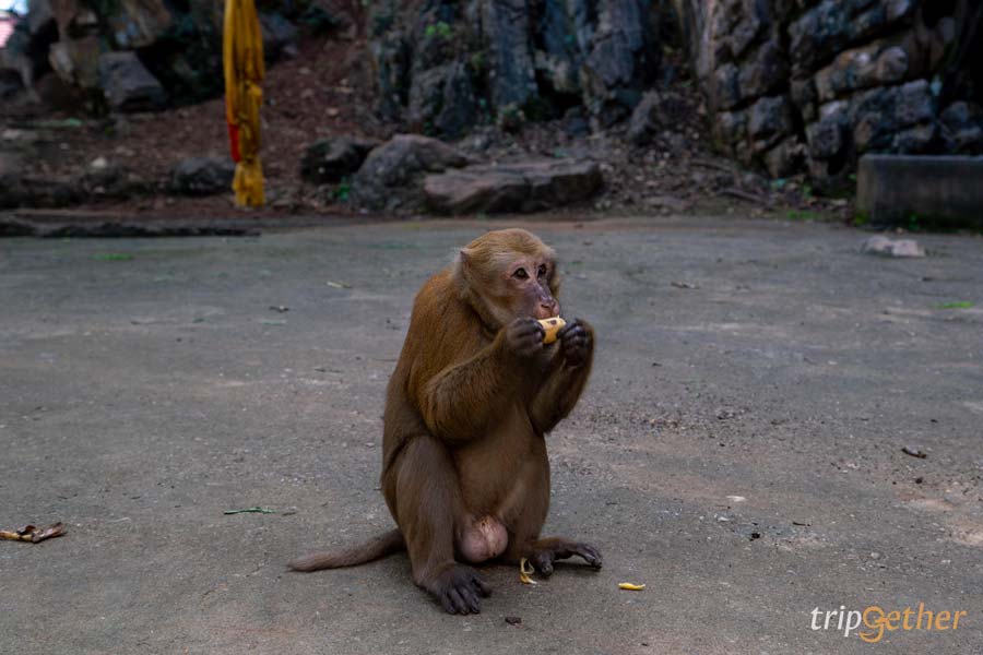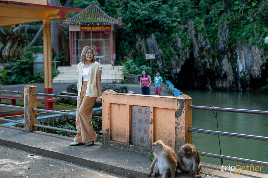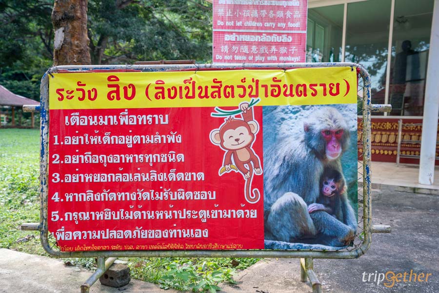 เมื่อมาถึงบริเวณหน้าวัดจะเป็นลาดจอดรถ บริเวณทางเข้าวัดจะมีจุดจำหน่ายดอกไม้ ธูปเทียน และไม้เรียวให้หยิบฟรี ซึ่งตอนที่เห็นก็งงนิดๆ ว่าทำไมต้องพกไม้เรียว คิดในใจว่าลิงที่นี่น่าจะดุมากๆ
