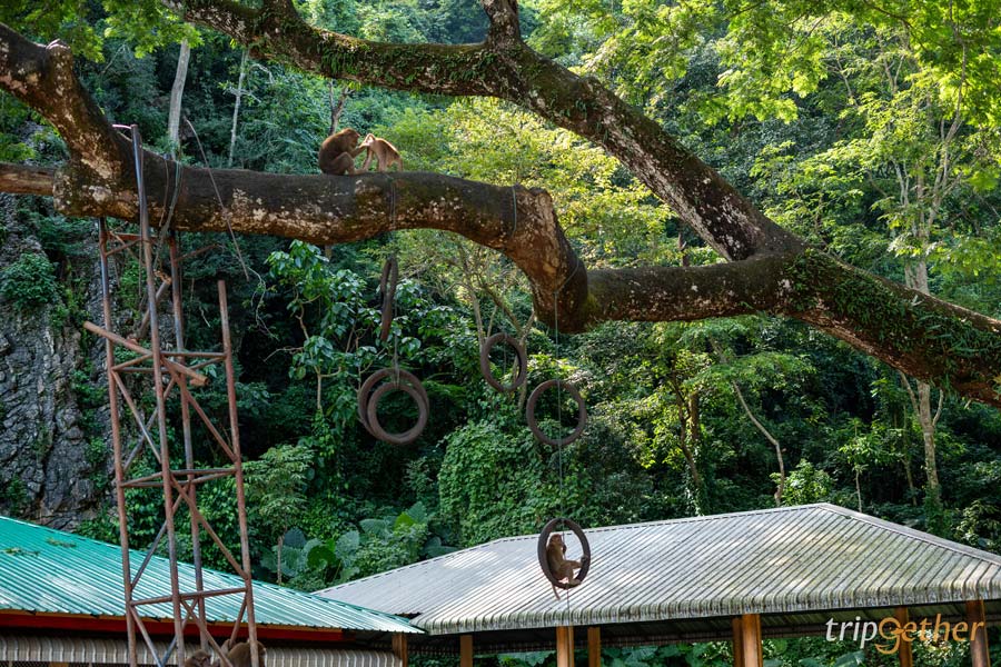 วัดถ้ำปลา มีพื้นที่เยอะพอสมควร มีวิหาร โบสถ์ และถ้ำที่เป็นที่ประดิษฐานของพระพุทธรูปและเป็นจุดท่องเที่ยว ซึ่งเราเริ่มกันที่ถ้ำกู่แก้ว ซึ่งบริเวณทางเข้าถ้ำจะมีลิงภูเขาอาศัยอยู่เยอะมาก และจุดนี้เองจะมีร้านขายอาหารลิงและให้เช่าไฟฉายอันละ 20 บาท