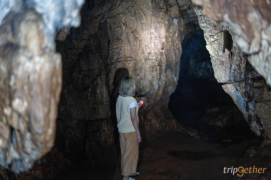 ด้านในถ้ำมืดมากและบางจุดก็มีน้ำขัง เราเลยเดินเข้าไปกันแค่นิดเดียว