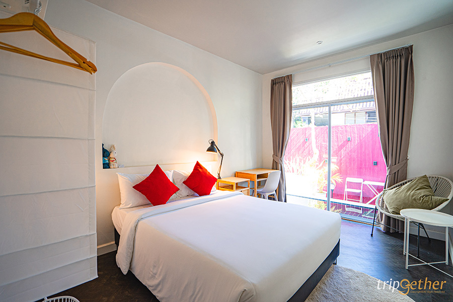 ห้องที่เราเลือกนอนเป็นห้องที่ติดกับสระว่ายน้ำ ห้องนอนกว้างขวางมีหน้าต่างบานใหญ่ทำให้ห้องดูสว่างและโล่งโปร่ง เพียงเดินเข้ามาก็เหมือนตัดความวุ่นวายจากภายนอก ภายในที่พักมีความเป็นส่วนตัวมาก บรรยากาศดูสบายๆ น่านอนพักผ่อนสักคืนจริงๆ บอกเลยว่าแค่เห็นห้องพักก็ช่วยให้หายเหนื่อยไปได้เยอะ