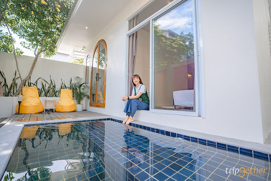 เพียงเปิดประตูออกจากห้องนอนก็เดินลงสระ เล่นน้ำเย็นๆ ได้เลย แถมถ่ายรูปอัปลงโซเชียลก็สวยเริ่ดมาก