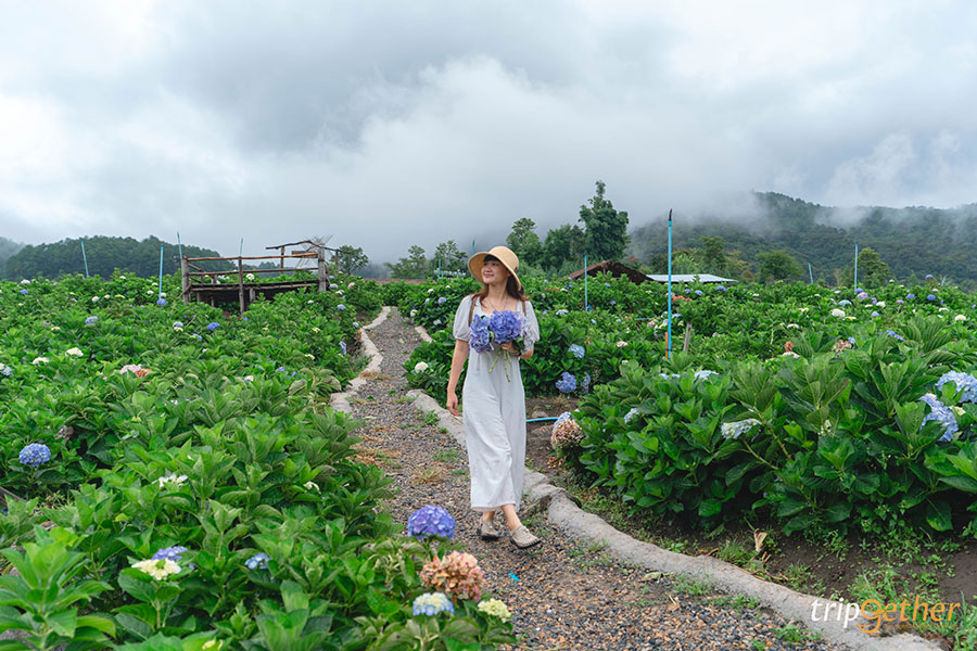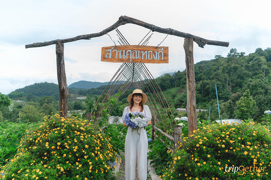 เดินทางมาสู่ที่เที่ยวสุดท้ายของทริป หลังจากเดินทางมาเหนื่อยๆ ก็เปลี่ยนมู้ดมาเที่ยวแบบสวยๆ กันบ้างที่ ทุ่งดอกไฮเดรนเยียร์ สวนคุณทองดี ด้วยพื้นที่สวนกว่า 5 ไร่ที่เต็มไปด้วยสีสันหลากหลายของทุ่งดอกไฮเดรนเยียร์ ประกอบกับสวนตั้งอยู่กลางหุบเขา ทำให้อากาศเย็นสบายและมีหมอกปกคลุมตามขุนเขาเป็นฉากหลังที่สวยงามมาก ทุกๆ จุดในสวนเรียกได้ว่าถ่ายรูปสวยๆ อัปลงโซเชียลได้หมด