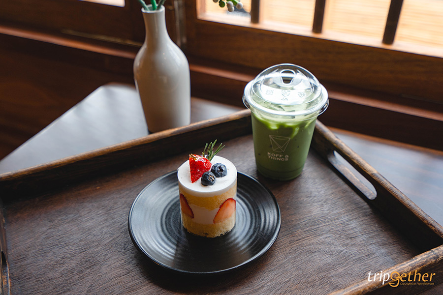 สำหรับมื้อแรกของวันมาเริ่มกินเบาๆ รองท้องกันก่อน โดยเมนูที่สั่งมาก็มี Premium Matcha Latte ได้ดื่มชาเชียวเข้มข้นๆ หอมกลิ่นชาคือดีงามมาก ส่วนเค้กก็สั่ง Strawberry Shortcake กินผลไม้รสเปรี้ยวหวานคู่กับครีมนุ่มๆ บอกเลยว่าเข้ากันมาก