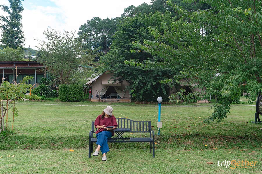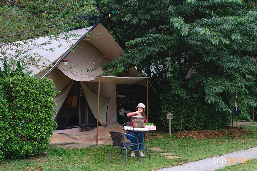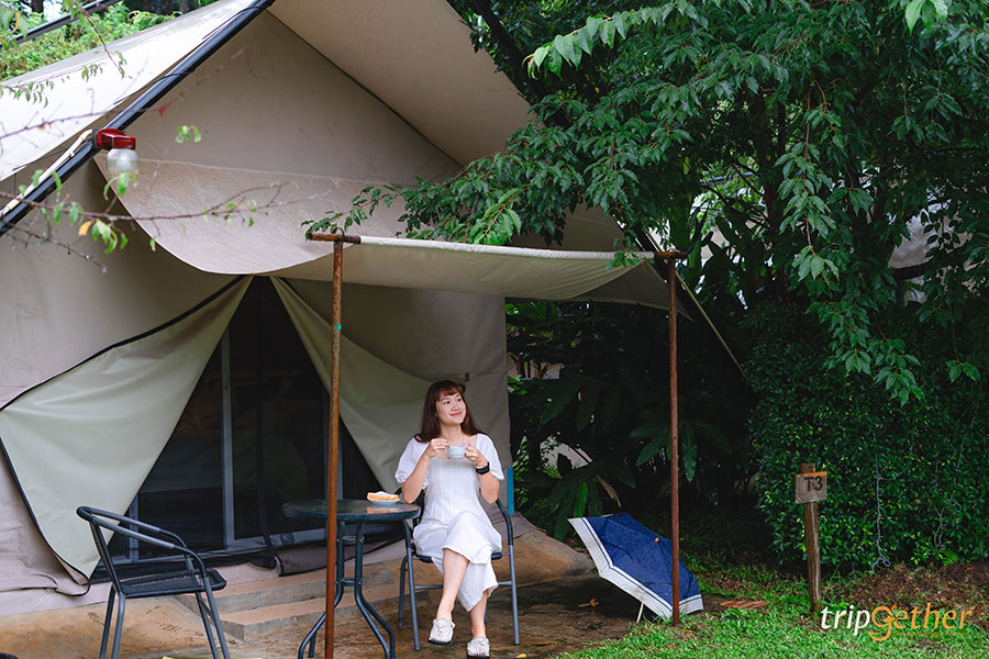 หลังจากที่นอนสบาย ชาร์จพลังมาทั้งคืน ในช่วงเช้านี้อากาศดีมาก เปิดเต็นท์มาก็เจอกับความเย็นๆ ที่พัดเข้ามาและเห็นความเขียวชอุ่มของธรรมชาติ ก่อนจะไปกินข้าวเช้ากันก็มาเดินเล่นรอบๆ ที่พักเก็บบรรยากาศในยามเช้าสักเล็กน้อย หรือรองท้องเบาด้วยขนมปังปิ้งและจิบโอวัลตินร้อนๆ หน้าที่พักก็ชิลล์ดีเหมือนกัน