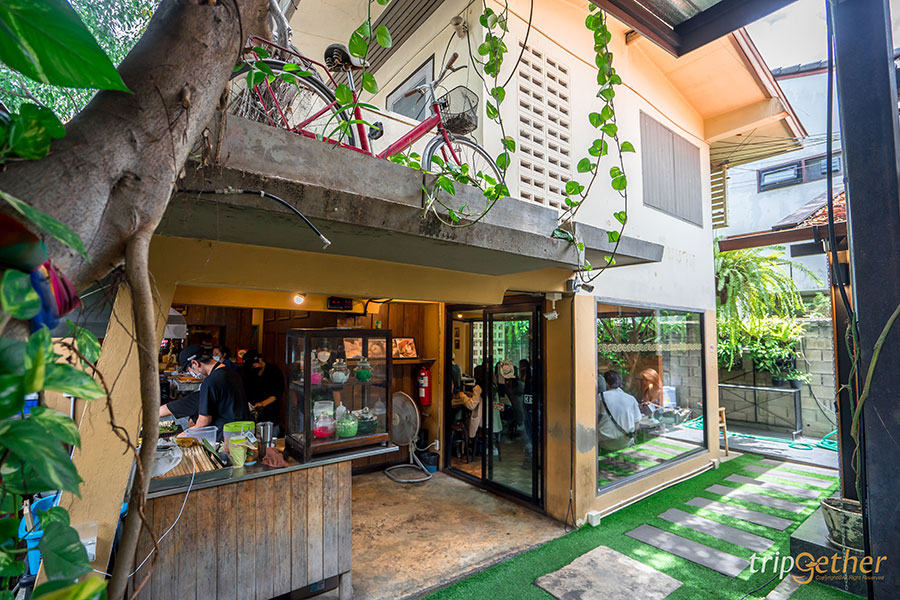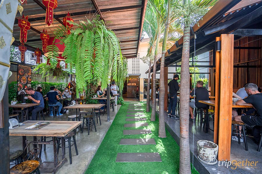 ภายในร้านก็ครึกครื้นมาก มีลูกค้าคอยแวะเวียนเข้ามาตลอดทั้งคนไทยและคนต่างชาติ บรรยากาศในร้านเรียบง่าย สบายๆ มีความร่มรื่นของต้นไม้ ส่วนโซนที่นั่งมีให้เลือกเยอะแยะไม่ว่าจะนั่งอินดอร์ในห้องแอร์เย็นๆ หรือจะนั่งโซนเอาท์ดอร์ก็ชิลล์สุดๆ
