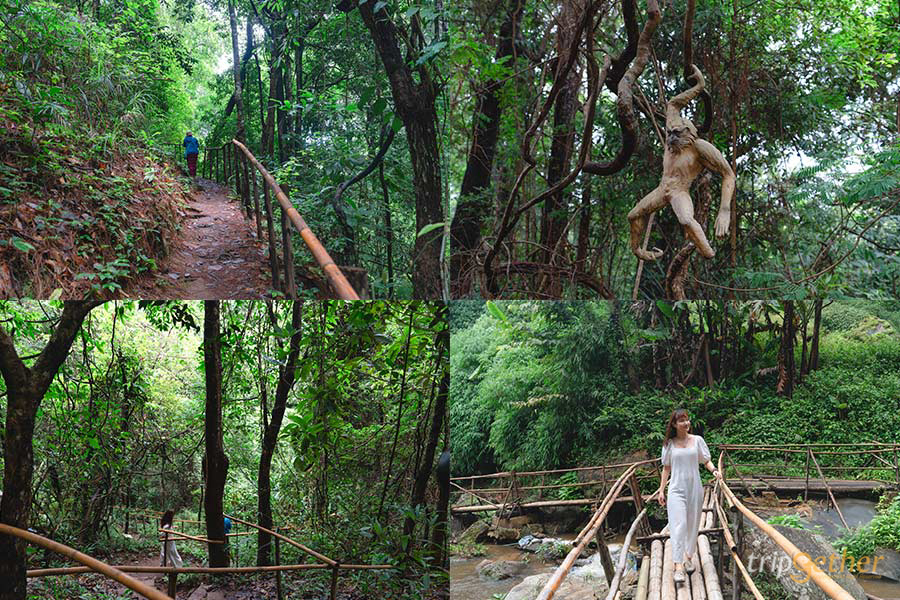 ภาพของสายน้ำตกสีขาวฟูฟ่องที่ตกผ่านหน้าผาสูง บวกกับสะพานไม้ไผ่หน้าน้ำตก กลายเป็นมุมถ่ายรูปยอดฮิตที่สามารถเห็นความสวยงามของน้ำตกได้แบบเต็มๆ ตา