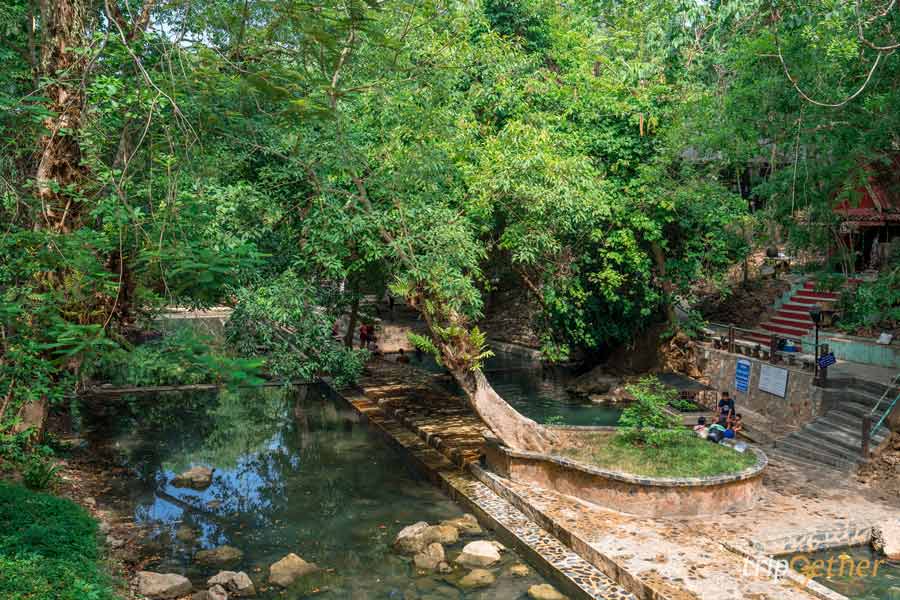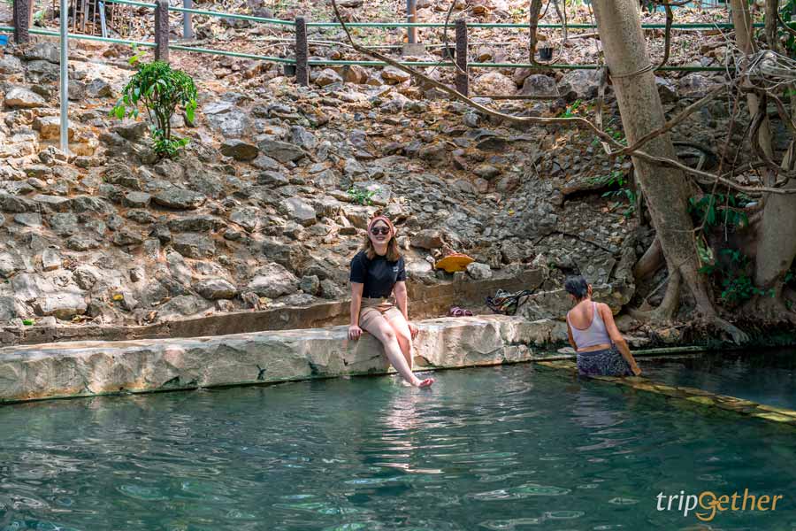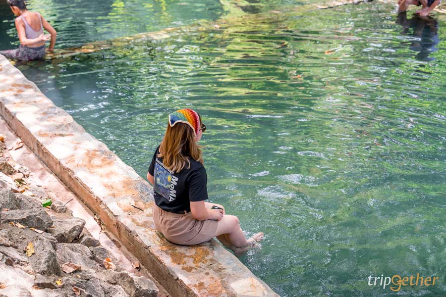 ด้วยความที่บ่อน้ำนั้นตั้งอยู่กลางแจ้ง มีร่มเงาจากต้นไม้ใหญ่ บรรยากาศคือร่มรื่นมากๆ และใกล้ๆ กับบ่อน้ำพุร้อนก็มีลำธารขนาดใหญ่ด้วยนะ ซึ่งสามารถลงไปเล่นน้ำได้ เรียกได้ว่ามาที่เดียวได้ทั้งแช่น้ำร้อนและโดดน้ำเย็นไปพร้อมๆ กันเลย!