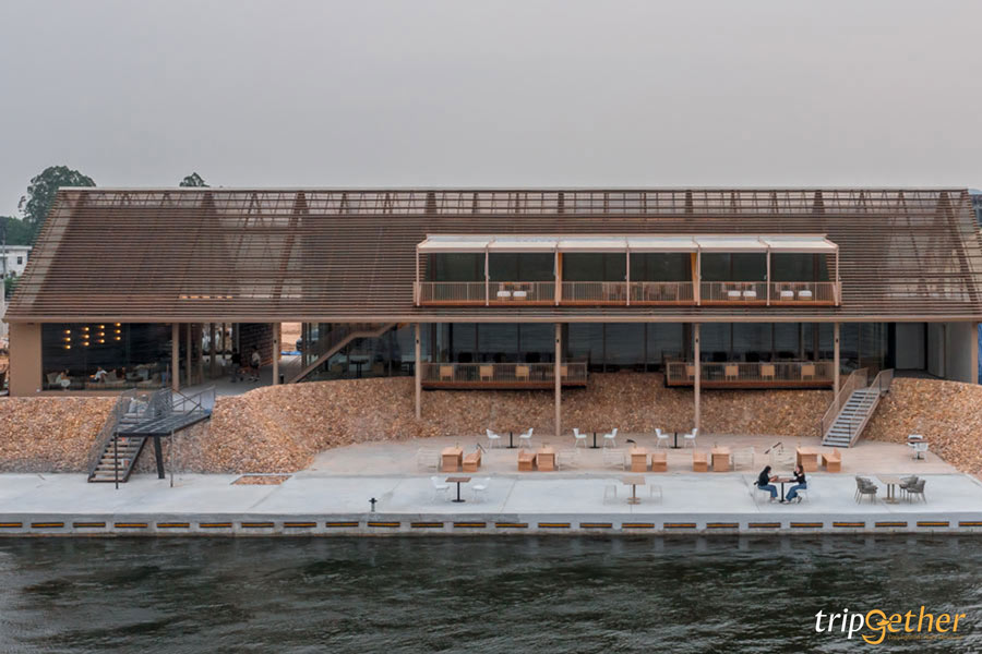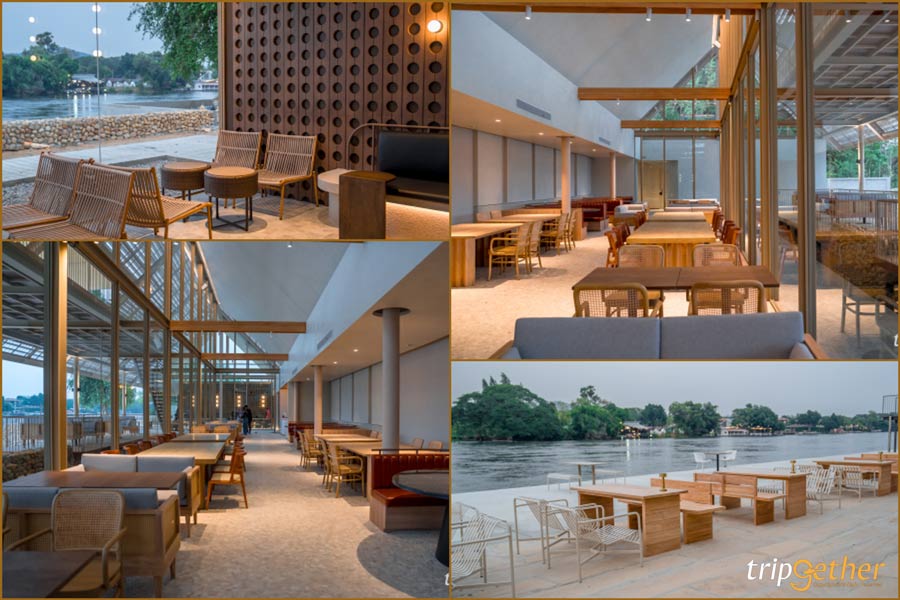 ที่นี่เป็นร้านอาหารและคาเฟ่เปิดใหม่ที่วิวสวยสุดๆ แถมดีไซน์การตกแต่งร้านก็สวยเก๋มาในโทนน้ำตาลครีมเบจ เน้นเฟอร์นิเจอร์ไม้ ให้รู้สึกความอบอุ่นละมุนตามาก ทั้งยังมีการเลือกใช้วัสดุจากท้องถิ่นมาตกแต่ง เรียกได้ว่าสวยงามโดดเด่นไม่เหมือนใครเลยทีเดียว สำหรับที่นั่งก็มีรองรับเยอะมาก ทั้งโซน Outdoor นั่งเย็นๆ ชมบรรยากาศริมน้ำ และโซน Indoor ในอาคาร Glass House ที่มรกระจกรอบด้าน สามารถมองเห็นวิวสวยๆ ด้านนอกได้อย่างชัดเจนเลยล่ะ