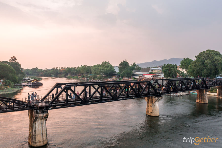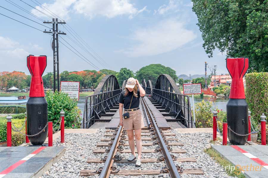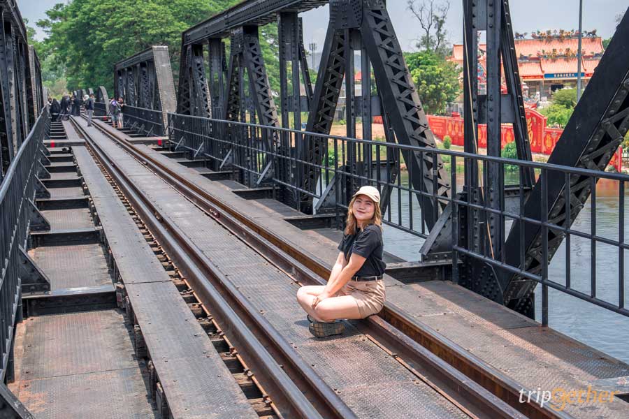 ก่อนกลับเราแวะไปที่ สะพานข้ามแม่น้ำแคว แลนด์มาร์กสำคัญของจังหวัดกาญจนบุรี สร้างขึ้นในระหว่างสงครามโลกครั้งที่ 2 ถือเป็นสถานที่ทางประวัติศาสตร์ที่สำคัญอีกแห่งหนึ่ง ปัจจุบันได้รับการปรับปรุง และซ่อมแซมโดยการรถไฟแห่งประเทศไทย จนกลายมาเป็นจุดเช็คอินยอดฮิตที่ผู้คนมักมาเดินเล่นถ่ายรูปบนทางรถไฟ และชมวิวแม่น้ำแคว