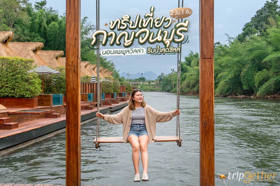 ทริปเที่ยวกาญจนบุรี 2 วัน 1 คืน นอนแพพูลวิลล่าริมน้ำสุดชิลล์ เช็คอินคาเฟ่เปิดใหม่