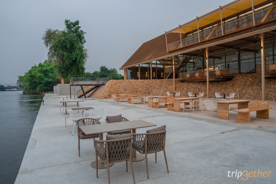 บรรยากาศธรรมชาติมาก ตัวร้านอยู่ติดริมแม่น้ำแควใหญ่