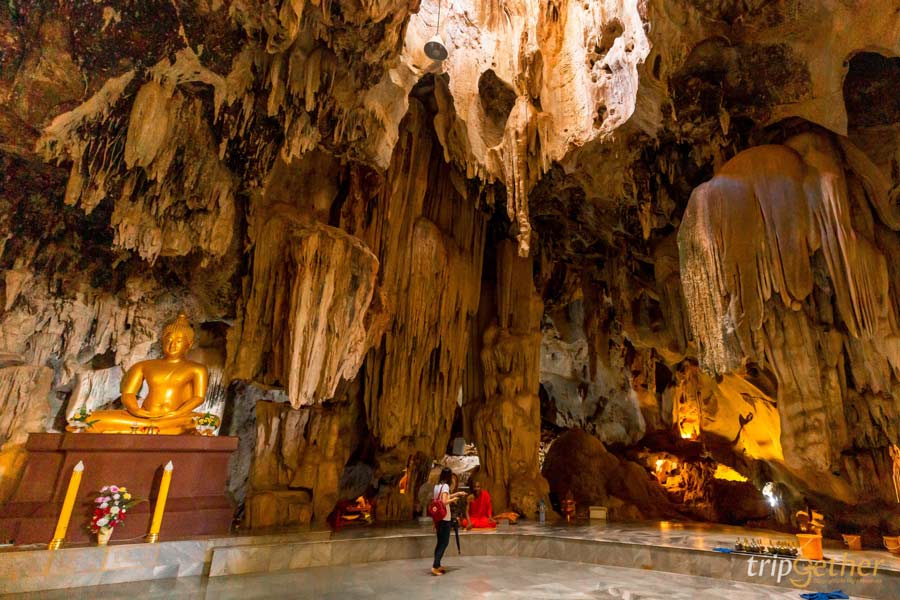 เมื่อเข้าไปภายในถ้ำมีหินงอกหินย้อยสุดตระกาตาให้เราได้ชมกัน ว่ากันว่าเดิมทีวัดแห่งนี้มีถ้ำเป็นอุโบสถ โดยภายในถ้ำมีพระพุทธรูปปางสมาธิประดิษฐานเป็นพระประธาน รวมทั้งเป็นที่ประดิษฐานพระบรมสารีริกธาตุที่อัญเชิญมาจากประเทศเมียนมาอีกด้วนะ