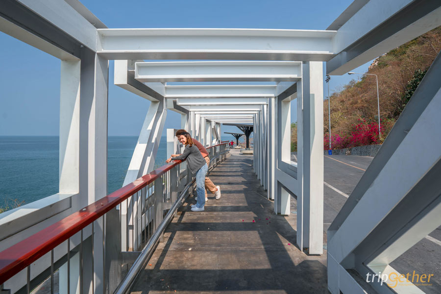 ทริปเที่ยวบางแสน ครั้งนี้สายมูก็มา เพราะเราจะไปไหว้สักการะ ขอพร กันที่ ศาลเจ้าแม่เขาสามมุข แต่ก่อนจะไปถึงที่ศาลเจ้าแม่ก็จะได้พบกับความสวยงามของริมถนนทางขึ้นเขาสามมุข ซึ่งเป็นหนึ่งในแลนมาร์กบางแสนที่สามารถมองเห็นผืนน้ำทะเลได้อย่างสุดลูกหูลูกตาแบบ 180 องศาเลย มีทางเดินให้เดินเล่นชิลล์ๆ รับลมทะเล แถมยังมีที่นั่งอีกด้วย ดีไซน์สวย มีหลากหลายมุมให้กดชัตเตอร์ถ่ายรูปกันรัวๆ