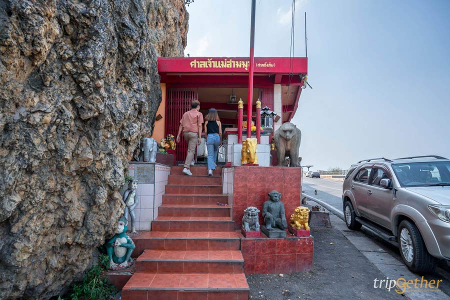 ศาลเจ้าแม่สามมุข ตั้งอยู่บน เขาสามมุข ศาลเจ้าแห่งนี้เป็นที่เลื่องลือความศักดิ์สิทธิ์มาช้านาน โดยเฉพาะกับความเชื่อของพ่อค้าแม่ค้าและชาวประมงให้พื้นที่ ที่ก่อนจะออกทะเล มักจะมาไหว้ขอพรที่ศาลเจ้าแม่สามมุขและผู้คนจากพื้นที่ต่างๆ แวะเวียนมาขอพรทั้งด้านความรัก การเงิน การค้าและธุรกิจ