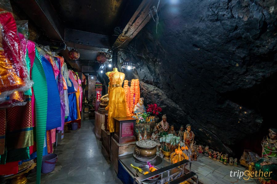 ของไหว้ที่นิยมก็คือ มะพร้าวอ่อน ขนมเปี๊ยะ และผลไม้ ผู้ที่ได้รับผลสำเร็จตามคำขอ จะแก้บนโดยการจุดประทัด และซื้อสร้อยมุขมาถวายแด่รูปปั้นเจ้าแม่นั่นเอง