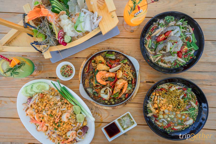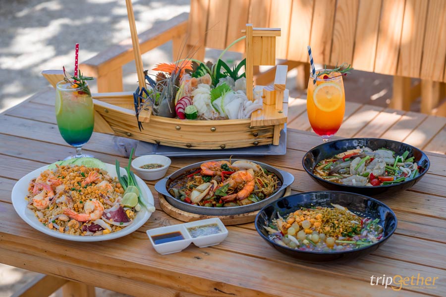 ในส่วนของเมนูอาหารจะเน้นเมนูอาหารเป็นของทะเลสดๆ มีทั้งกุ้ง หมึก ปู แน่นอนว่ามาถึงทะเลทั้งทีต้องไม่พลาด อ่าวไทยซาชิมิ เมนูซาซิมิของทางร้านซีฟู้ดคลับกินคู่กับวาซาบิหรือน้ำจิ้มซีฟู้ด บอกเลยว่าฟินสุดๆ ได้ความอร่อย สดใหม่มาแบบจัดเต็มในราคา 1,390 บาท พร้อมเมนูยำแซ่บๆ อย่างยำกุ้งสด ราคา 280 ยำไข่ปลา หรือยำสามไข่ ไข่ปลาเรียวเซียว ไข่ปู และไข่แมลงดา ใส่เครื่องยำครบครัน ตัวไข่ต่างๆ รสชาติมันเข้ากันสุดๆ จานนี้ราคา 380 บาท
