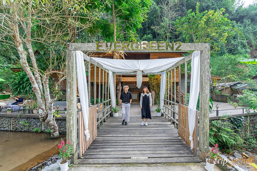 สำหรับคืนนี้เราไปพักกันที่ Evergreen 2 ที่พักสุดชิลล์กลางหุบในหมู่บ้านป๊อกใน บอกได้เลยว่าใกล้ชิดกับธรรมชาติสุดๆ ไม่ว่าจะมองไปทางไหนก็เจอแต่ความร่มรื่นของต้นไม้ ได้ฟังเสียงน้ำตกและนั่งชิลล์ริมลำธารที่ไหลผ่านหน้าที่พัก บรรยากาศที่เงียบสงบ อากาศเย็นสบาย เหมาะกับการพักผ่อนในทริปนี้ของเราสุดๆ เลย