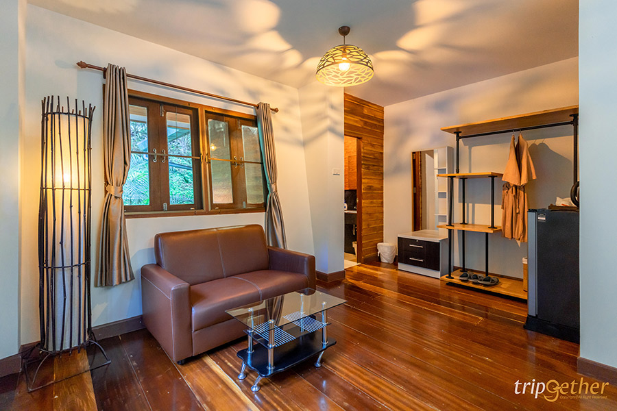 Evergreen 2 เป็นบ้านไม้ 2 ชั้นท่ามกลางธรรมชาติ มีห้องพักทั้งหมด 2 ห้อง อยู่ที่ชั้น 2 ของตัวบ้าน ภายในห้องพักจะเตียงขนาด 6 ฟุต ทริปนี้เรานอนได้สบายๆ เลย ห้องกว้างขวางมาก มีโซฟาสำหรับนั่งเล่น และสิ่งอำนวยความสะดวกอย่างทีวี แอร์ ตู้เย็น รองเท้าสลิปเปอร์ ผ้าเช็ดตัว ชุดคลุมอาบน้ำ และสัญญาณไวไฟที่เร็วมาก สายโซเชียลแบบพวกเราปลื้มสุดๆ