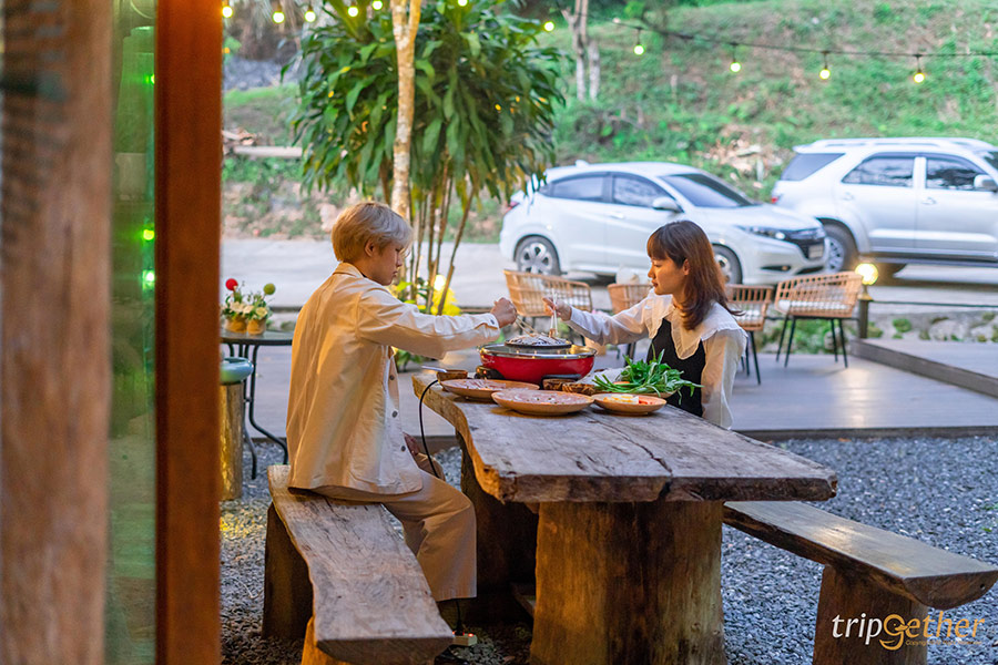 หน้าที่พักติดกับลำธารเลย พอถึงช่วงเย็นบรรยากาศก็ยิ่งดีเพราะอุณภูมิที่ลดลงบวกกับที่พักที่โอบล้อมไปด้วยต้นไม้ อยากให้ทุกคนได้มาสัมผัสกับบรรยากาศดีๆ แบบนี้เหมือนพวกเรา