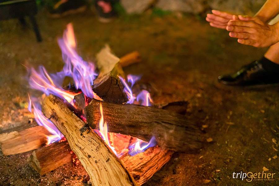 อากาศหนาวแบบนี้กิจกรรมที่เราไม่ควรพลาดก็ต้องผิงไฟกันหน่อย เพิ่มความอบอุ่นให้ร่างกาย แต่จะนั่งผิงไฟกันอย่างเดียวก็อาจจะดูเหงาไปสักหน่อย ก็เราเลยเอามันม่วงและไข่ป่ามมาปิ้งกัน ซึ่งทางที่พักเตรียมให้ฟรีเลย ปิ้งไป คุยกันไป ดีสุดๆ เลย