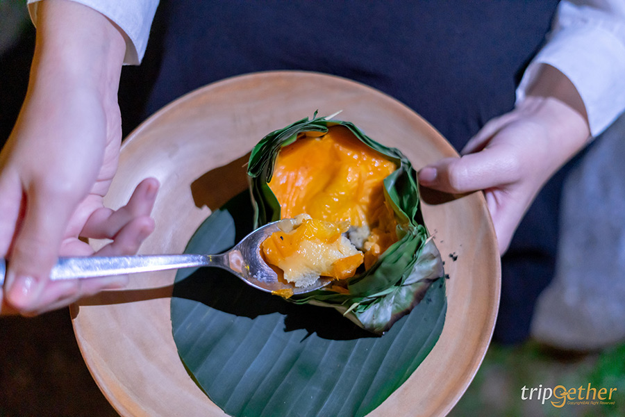 ไข่ป่ามที่ทางที่พักเตรียมให้เรา กินร้อนๆ อร่อยที่สุด แถมหอมกลิ่นใบตองอีกด้วย