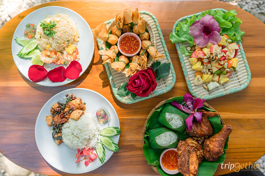 หลังจากเราเช็คอินเก็บกระเป๋ากันเรียบร้อยก็มาฝากท้องมื้อกลางวันกับร้านอาหารของที่พักสามารถสั่งได้เลย มีเมนูให้เลือกเยอะมาก มีทั้งเมนูอาหารจานเดียว เมนูกับข้าว เมนูของกินเล่น ซึ่งพวกเราสั่งกันแบบจัดเต็มไปเลยกองทัพต้องเดินด้วยท้อง