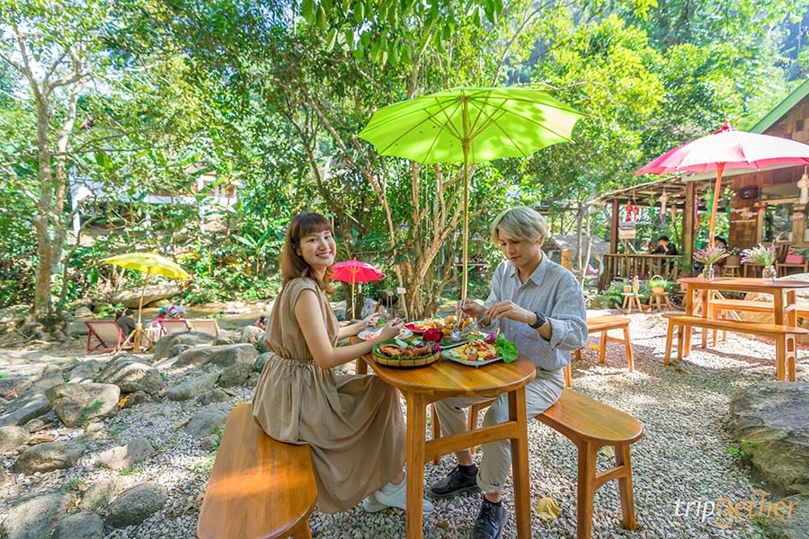 เมื่อเดินเข้ามาจะเจอกับสะพานข้ามลำธาร ก่อนจะไปสั่งอาหารก็เดินไปถ่ายรูปอัปโซเชียลสวยๆ กันก่อนเลย