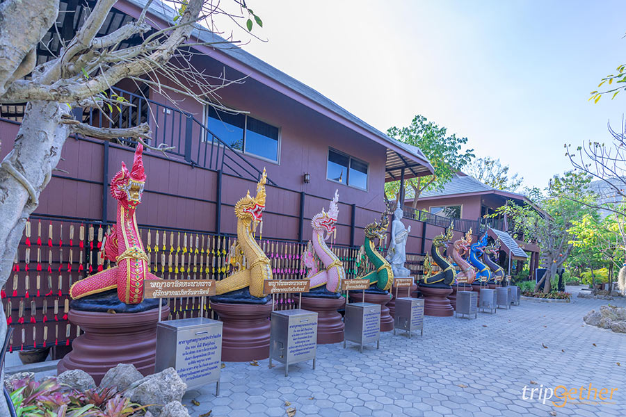 ภายในวิหารอริยมรรค 8 จะมีรูปปั้นพญานาคทั้ง 4 ตระกูลอยู่ ได้แก่ พญานาคราชสีดำ พญานาคราชสีเขียว พญานาคราชสีรุ้ง และพญานาคราชสีทอง