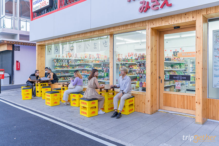 บรรยากาศรอบๆ ได้ฟีลญี่ปุ่นมาก ไม่ว่าจะเป็นทางเชื่อมทางเท้าที่ทำเหมือนทางขึ้นลงสถานีรถไฟของญี่ปุ่น ร้านค้า ร้านอาหารสไตล์ญี่ปุ่น ที่เปิดให้บริการ ยิ่งในช่วงที่เราไปเชียงใหม่อากาศเย็นลงได้ฟีลขึ้นไปอีก
