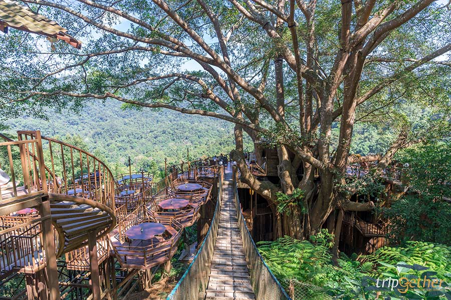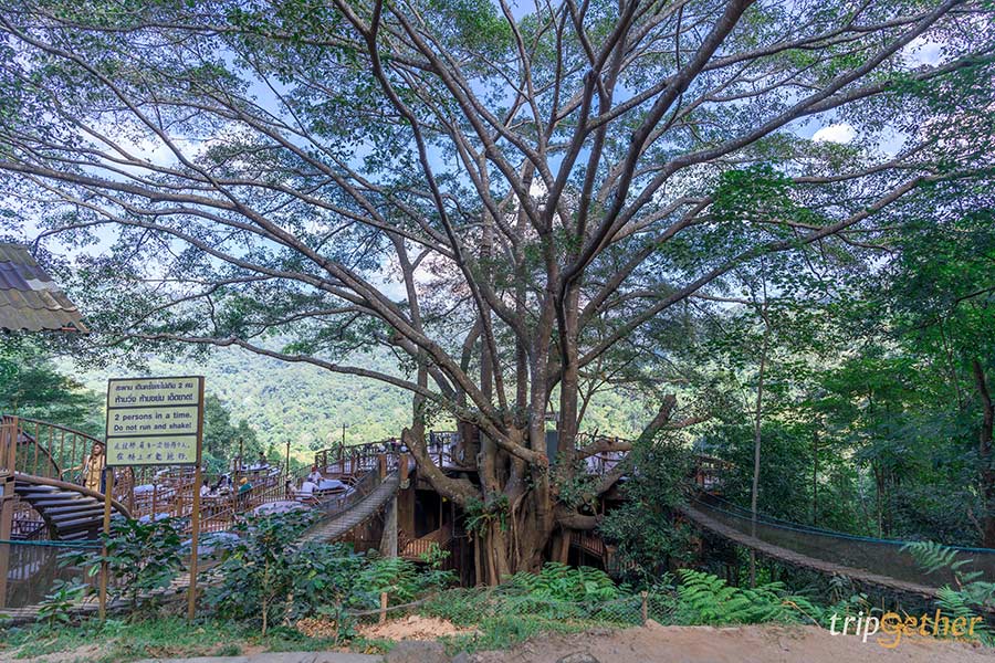 ไฮไลท์คือการเดินบนสะพานข้ามไปยังโซนที่นั่งที่ยื่นออกไปยังผืนป่า บอกเลยว่าสวยงามมากจริงๆ เป็นมุมถ่ายรูปสวยๆ ด้วยอีกด้วย มาแล้วก็อย่าลืมถ่ายรูปเช็คอินกันนะ