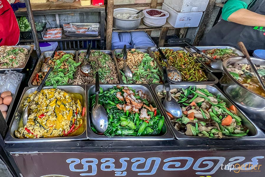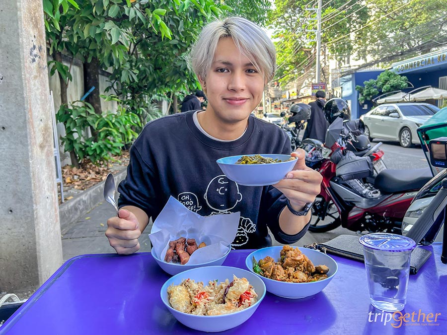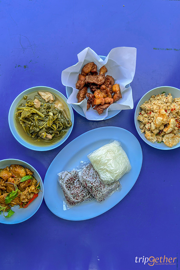 เมนูที่เราสั่งกันวันนี้เราสั่งมาเป็นแบบกับข้าว คือหมูสามชั้นทอดฉ่ำๆ ราคาขีดละ 40 บาท จอผักกาด ราคา 35 บาท ตำขนุน ราคา 35 บาท ผัดฉ่าขาหมู ราคา 35 บาท และข้าวเหนียวร้อนๆ ราคาห่อละ 5 บาท
