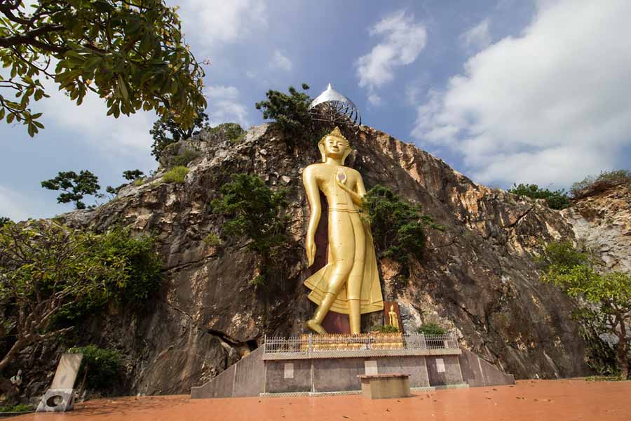 ข้ามสะพานมาจะมีทางเดินเลียบน้ำ ด้านในมีพระพุทธรูปปางลีลาแบบนูนต่ำขนาดใหญ่ ให้ได้สักการะเป็นการปิดท้ายก่อนกลับ..