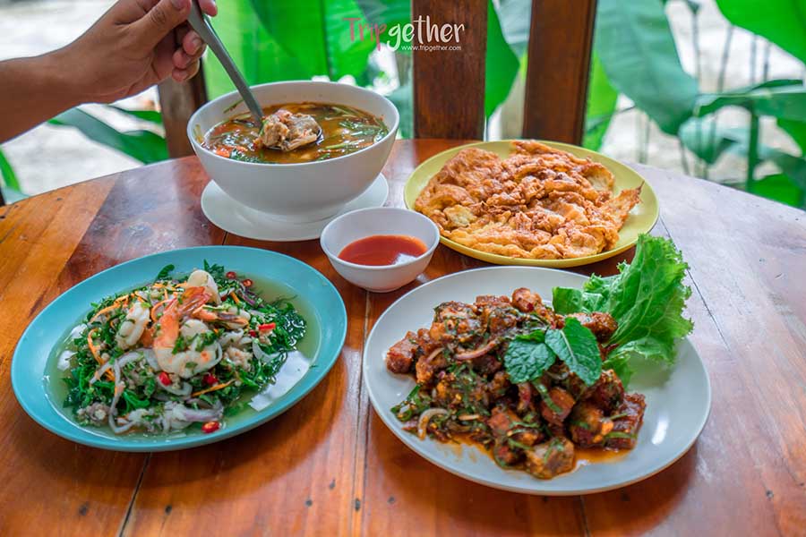 ในส่วนของเมนู ที่นี่จะเสริฟเน้นอาหารไทย โดดเด่นด้วยเมนูพื้นบ้านวัตถุดิบสดใหม่ รสชาติดีออกหวานนิดๆ ที่สำคัญราคาไม่แพงได้เยอะเกินราคา