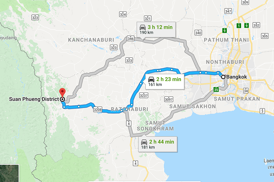 ทริปเสาร์อาทิตย์แบบนี้ คนอาจจะเยอะหน่อยแต่ก็ไม่เหงา เราออกเดินทางช่วงสายวันเสาร์ เพื่อหลีกเลี่ยงกับรถติด การเดินทางจากกรุงเทพมา อำเภอสวนผึ้งมีด้วยกัน 3  เส้นทาง ถนนหมายเลข 4 ยิงตรงไปราชบุรี หมายเลข 35 ผ่านจังหวัดสมุทรสาคร-สมุทรสงคราม และหมายเลข 346 ผ่านจังหวัดกาญจนบุรี ลองศึกษาเส้นทางเพิ่มเติม เผื่อมีเวลาอาจได้แวะเช็คอินกันเพิ่ม