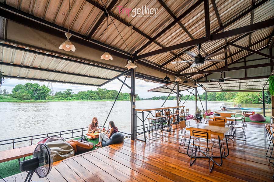 ขากลับต้องผ่านตัวเมืองราชบุรีกันอยู่แล้ว เลยขอแวะทานอะไรอร่อยๆ แบบบรรรยากาศริมน้ำที่ ธาราคอฟฟี่ ที่ตั้งจะอยู่ในถนนค่อนข้างลึก แนะนำให้มาตาม GPS รับรองว่าถึงที่หมายชัวร์ ด้านหน้าร้านมีลานจอดรถกว้างขวาง ส่วนร้านตั้งอยู่บนแพริมแม่น้ำแม่กลอง มีที่นั่งทั้งในโซนห้องแอร์และโอเพ่น มีลมเย็นๆ พัดผ่านตลอด