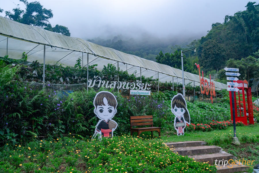 เดินทางได้ราวๆ 3 ชั่วโมง ในที่สุดเราก็มาถึงโลเคชั่นสุดท้ายในทริปนี้ นั่นก็คือดอยอินทนนท์ และที่พักในคืนสุดท้ายนี้เราพักที่ บ้านสวนอริยะ ที่พักที่ตอบโจทย์การพักผ่อนให้ธรรมชาติฮีลใจอย่างแท้จริง เพราะที่นี่นอกจากจะตั้งอยู่บนดอยอินทนนท์แล้ว ยังรายล้อมไปด้วยธรรมชาติ สวนดอกไม้ และไร่องุ่น