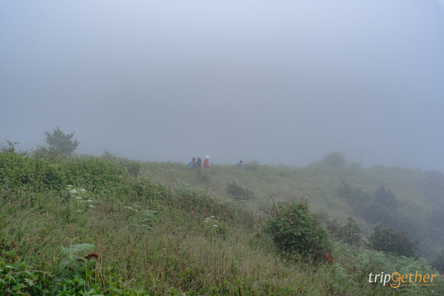 ซึ่งพอถึงจุดนี้แล้วพี่ไกด์ก็ถามเราว่าจะเดินต่อให้ครบตามเส้นทางเลยไหม หรือจะกลับทางเดิม แต่พี่ไกด์แนะนำว่าดูจากสภาพอกาศแล้ว ถ้าเดินต่อไปคงจะไม่เห็นอะไรเลยเหมือนเดิม เลยแนะนำให้เดินกลับดีกว่า