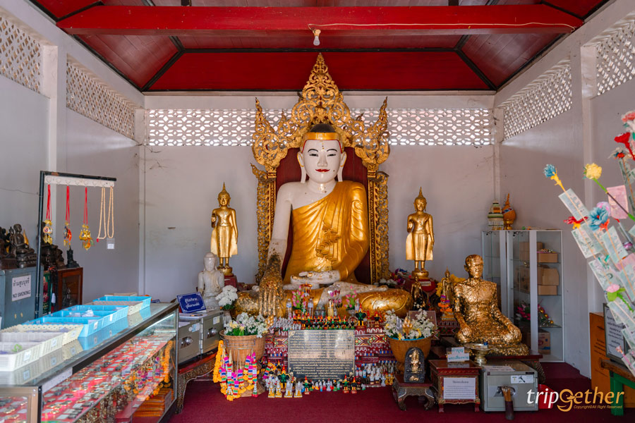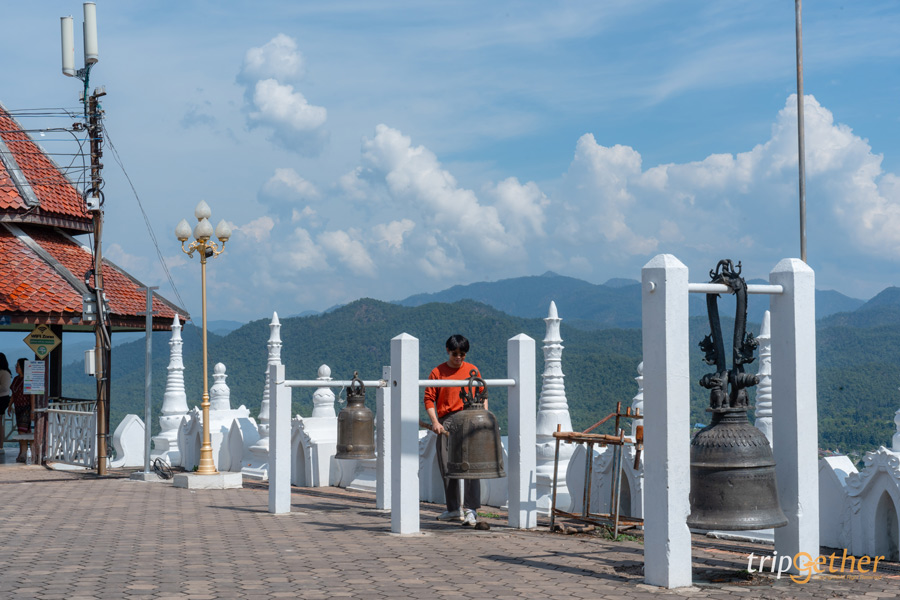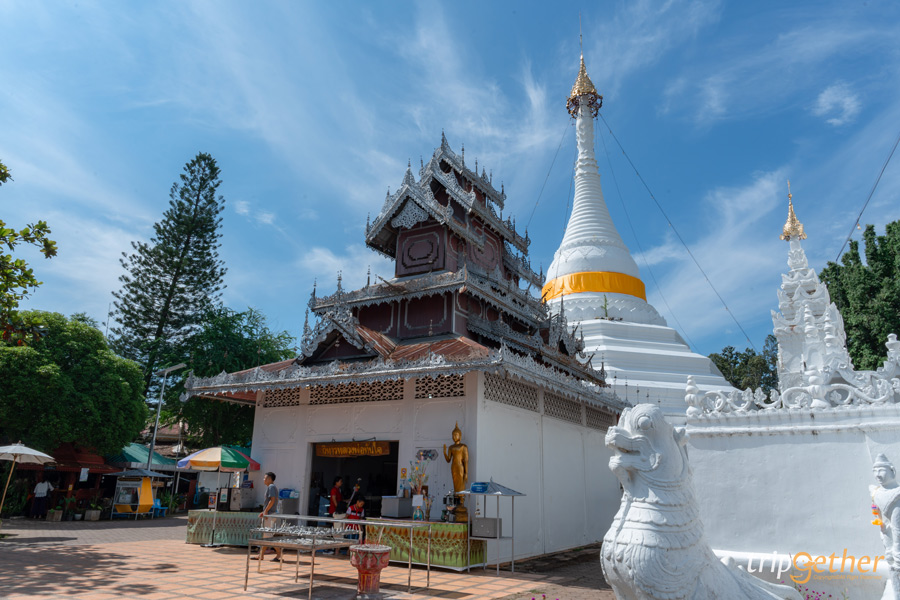 นอกจากนี้บริเวณรอบๆ วัดยังมีจุดต่างๆ ให้ได้ไหว้ แถมยังเป็นมุมถ่ายรูปที่สวยมากๆ อีกด้วย อย่างแนวเสาระฆังที่ขนานไปกับภาพวิวภูเขา บันไดที่มีรูปปั้นสิงห์คู่ซ้ายขวา หรือจะเป็นวิวตัวเมืองแม่ฮ่องสอนด้านล่างก็สวยไม่แพ้กัน