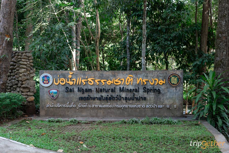 จัดมื้อกลางวันกันแล้ว ก็ถึงเวลาของการพักผ่อนในช่วงบ่าย เราขับรถออกมาจากตัวเมืองปายประมาณ 30 นาที เพื่อมาผ่อนคลายกันที่ น้ำพุร้อนไทรงาม