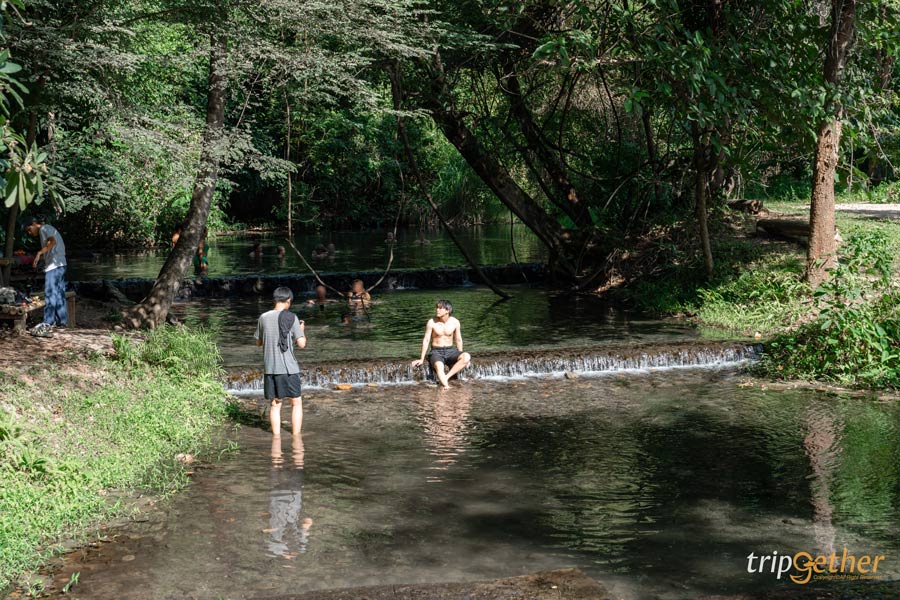 ขับผ่านป้อมทางเข้าอุทยานมาเพียง 5 นาที เราก็ถึงน้ำพุร้อนแล้ว ซึ่งน้ำพุร้อนไทรงามเป็นบ่อน้ำแร่ขนาดกลาง ตั้งอยู่ท่ามกลางธรรมชาติ มีชั้นตื้นๆ ที่ดหลั่นกันลงไปประมาณ 3 ชั้น แต่ชั้นที่คนนิยมลงแช่น้ำกันจะเป็นชั้นบนสุด