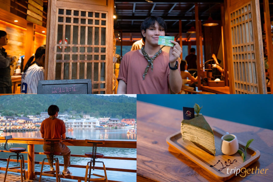 เดินเล่นได้สักพักก็ใกล้เวลาขึ้นเรือ รอบที่เราจองคือ 18.20 น. (แนะนำว่าให้จองรอบเรือไว้ล่วงหน้านะ เพราะคิวค่อนข้างแน่นเลย) สามารถเอาหลักฐานการจองมาแสดงให้กับพนักงานที่ร้านลีไวน์ได้เลย และระหว่างนั่งรอ ก็เหลือบไปเห็นขนมหวาน ด้วยความที่อดใจไม่ไหวเลยต้องสั่งมากินสักหน่อย เมนูที่เราสั่งคือเครปเค้กชาเขียว ที่หวานกำลังดี หอมกลิ่นชามากๆ ราคาชิ้นละ 120 บาทเท่านั้น