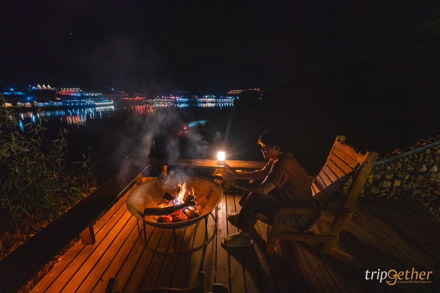 เดินกลับเข้ามาถึงห้องพัก อากาศเย็นๆ ท้องฟ้าเห็นดาวแบบนี้ ก็ต้องก่อไฟไว้นั่งผิงชมวิวสบายๆ กันสักหน่อย โดยสามารถแจ้งกับพนักงานที่ล็อบบี้ได้เลย เสียค่าบริการในการก่อไฟ 50 บาท