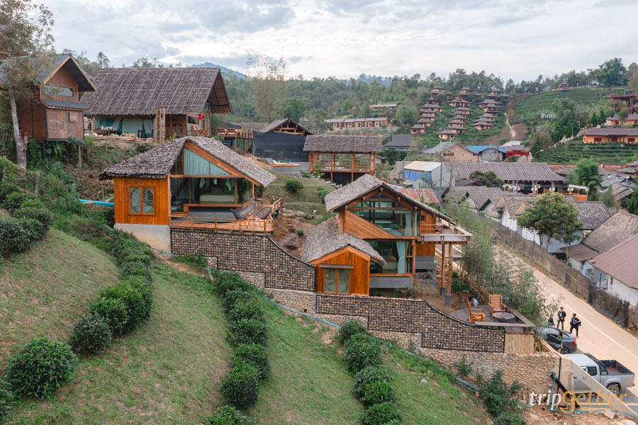 ต้องบอกว่าโชคดีมากๆ ที่เราสามารถจองห้องพักของ Wojia Resort ได้ เพราะที่นี่ห้องพักเต็มเร็วแถมเต็มยาวมากๆ ความเก๋ของที่นี่คือเป็นที่พักที่เพิ่งเปิดใหม่แบบสดๆ ร้อน แถมยังมีบ้านพักเพียง 3 หลังเท่านั้น ตั้งอยู่บนเนินใกล้กับทะเลสาบอีกด้วย โลเคชั่นดีสุดๆ