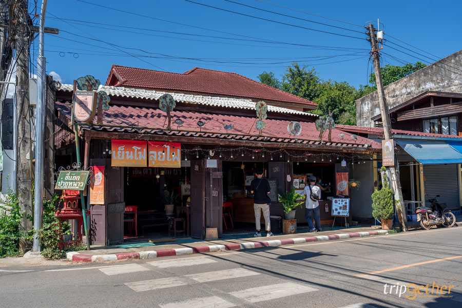 เย็นโฟลุยไฟ เป็นร้านเล็กๆ อาคารไม้ชั้นเดียว ตั้งอยู่ติดกับสี่แยกใจกลางเมืองปาย ซึ่งทางพี่เจ้าของร้านบอกว่า เพิ่งเปิดได้ไม่นาน