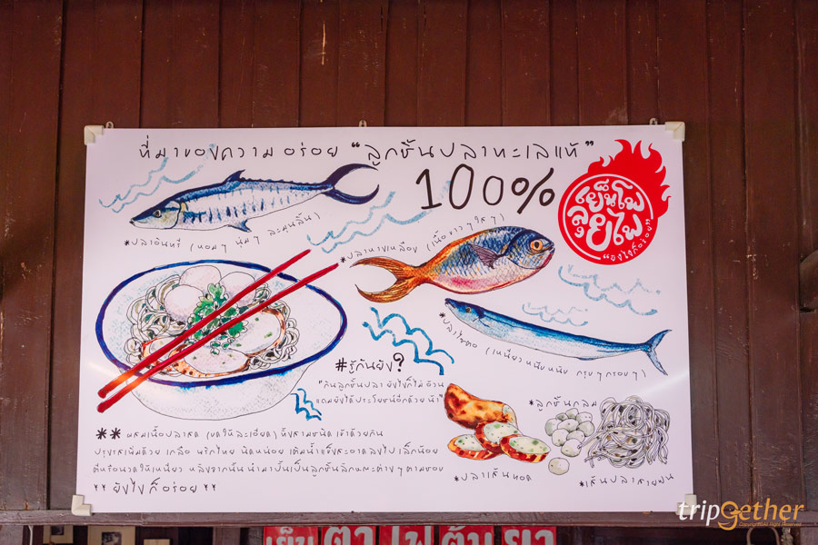 ความพิเศษของทางร้านคือวัตถุดิบจะเน้นเป็นลูกชิ้นปลาที่มีหลากหลายรูปแบบ ซึ่งทั้งหมดทำมาจากเนื้อปลาทะเลแท้ๆ แบบ 100% ที่ส่งมาจากเยาวราชทั้งหมด พอได้ยินแบบนี้เราก็สั่ง เย็นตาโฟต้มยำมาเลยคนละชาม ราคาอยู่ที่ชามละ 55 บาทเท่านั้นเอง