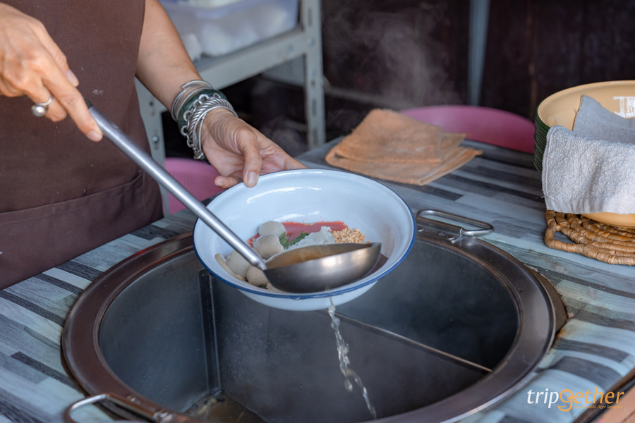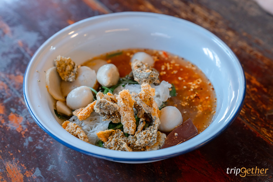 นอกจากน้ำซุปจะหอมฉุยแล้ว เครื่องที่ใส่มาในชามแน่นมาก ทั้งลูกชิ้นปลาสารพัดรูปแบบ หนังปลากรอบ เครื่องเย็นตาโฟ แถมรสชาติยังจัดจ้าน เหมือนกับชื่อร้านเลย