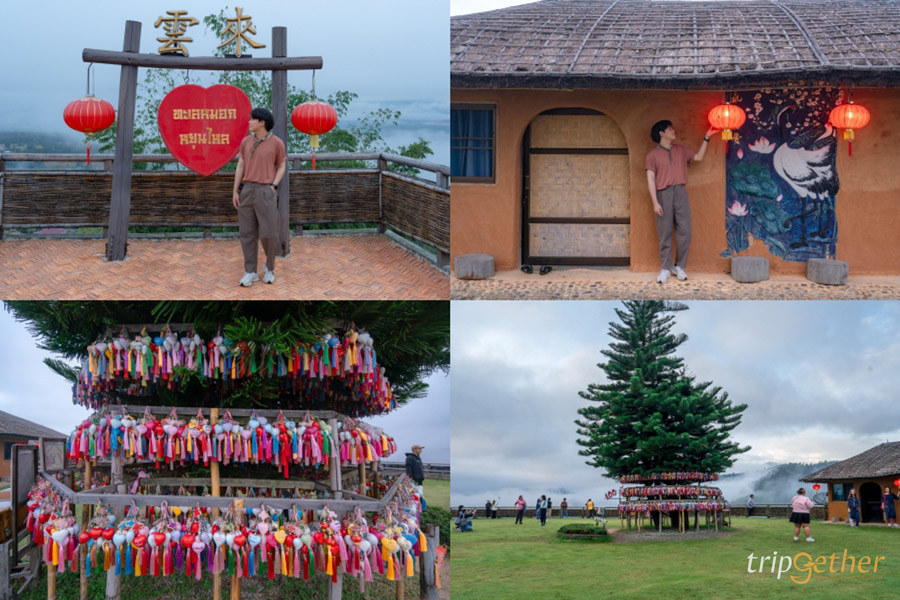 นอกจากทะเลหมอกแล้ว ยังมีมุมถ่ายรูปสวยๆ ให้เดินเล่น โพสท่ากันเยอะมาก ทั้งป้ายทะเลหมอกน่ารักๆ บ้านดินแบบจีนยูนนาน หรือจะเป็นมุมต้นสนที่มีพวงกุญแจรูปหัวใจแขวนอยู่นับร้อยๆ พวง