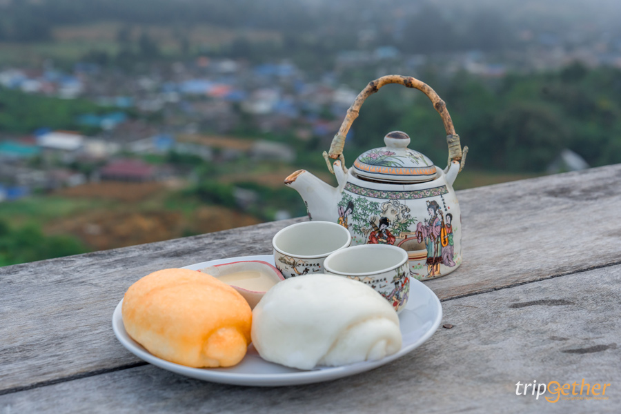 เรือแต่ละลำ มีชายอดน้ำค้างร้อนๆ ให้บริการฟรี ได้ลองชิมดูแล้ว บอกเลยว่าหอมละมุนมากๆ อากาศเย็นๆ จิบชาอุ่นๆ แบบนี้ ฟินที่สุด
